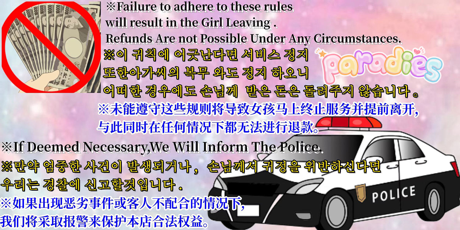 请确保所有费用均以日元支付。服务均在支付完款项后进行,选择信誉用卡支付时 会产生10%手续费 等待结算成功后 我们才能开始派送佳丽!请务必遵守。谢谢合作!